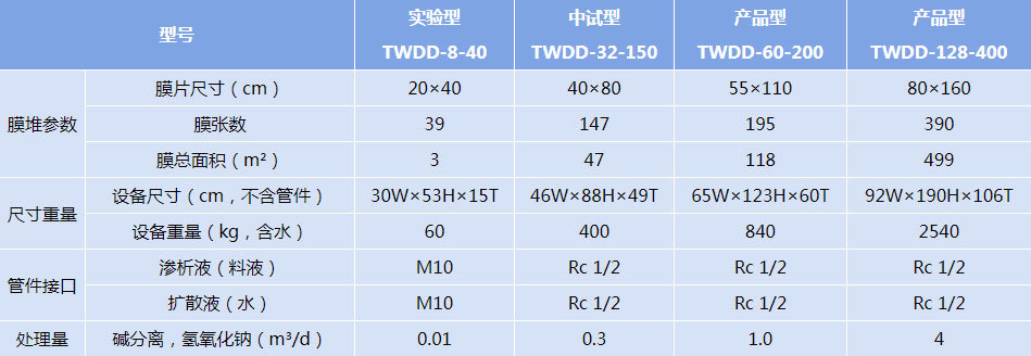 備注:上述數(shù)據(jù)均為參考值,而非設(shè)備的性能保證值,表格中的數(shù)據(jù)可能變更;堿回收擴散滲析器可用于處理氫氧化鈉、氫氧化鉀、氫氧化鋰。